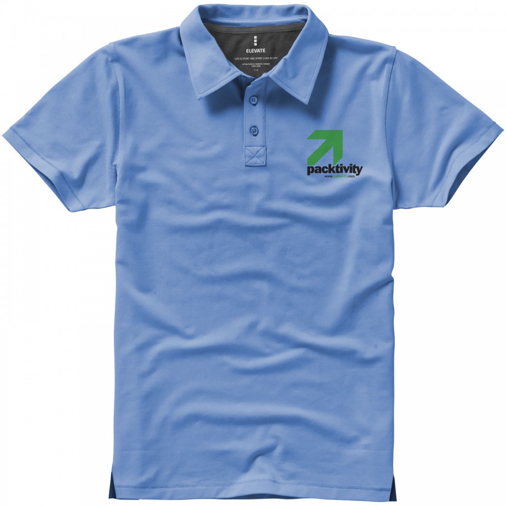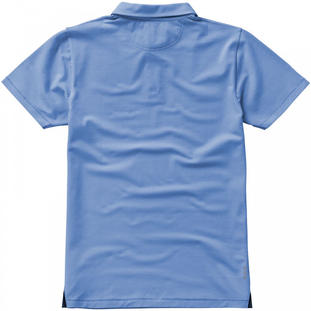 Normál szabásvonal. A férfi modell 3, a női 4 gravírozott, színben illeszkedő gombbal. Az oldalsliccben kontrasztos színű V-betét. Rejtett öltések. Tónusos logónyomat hátul. Kontrasztos színű félhold nyakbetét. Szatén szalagerősítés a nyakrészen. Saját anyagából készült gallér. Dupla piké, 95% pamut és 5% elasztán. 200g/m2.