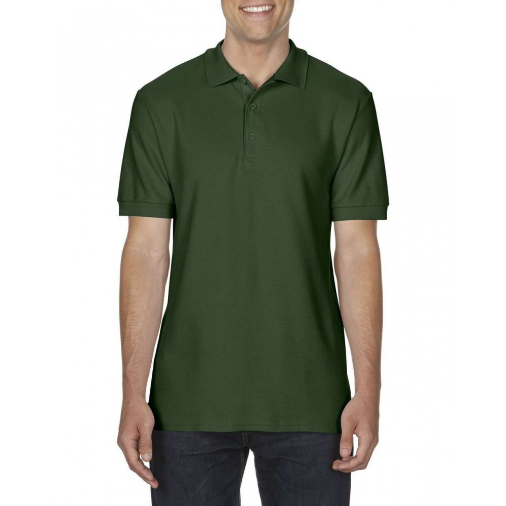 Gildan Premium férfi duplapiké póló, Military Green