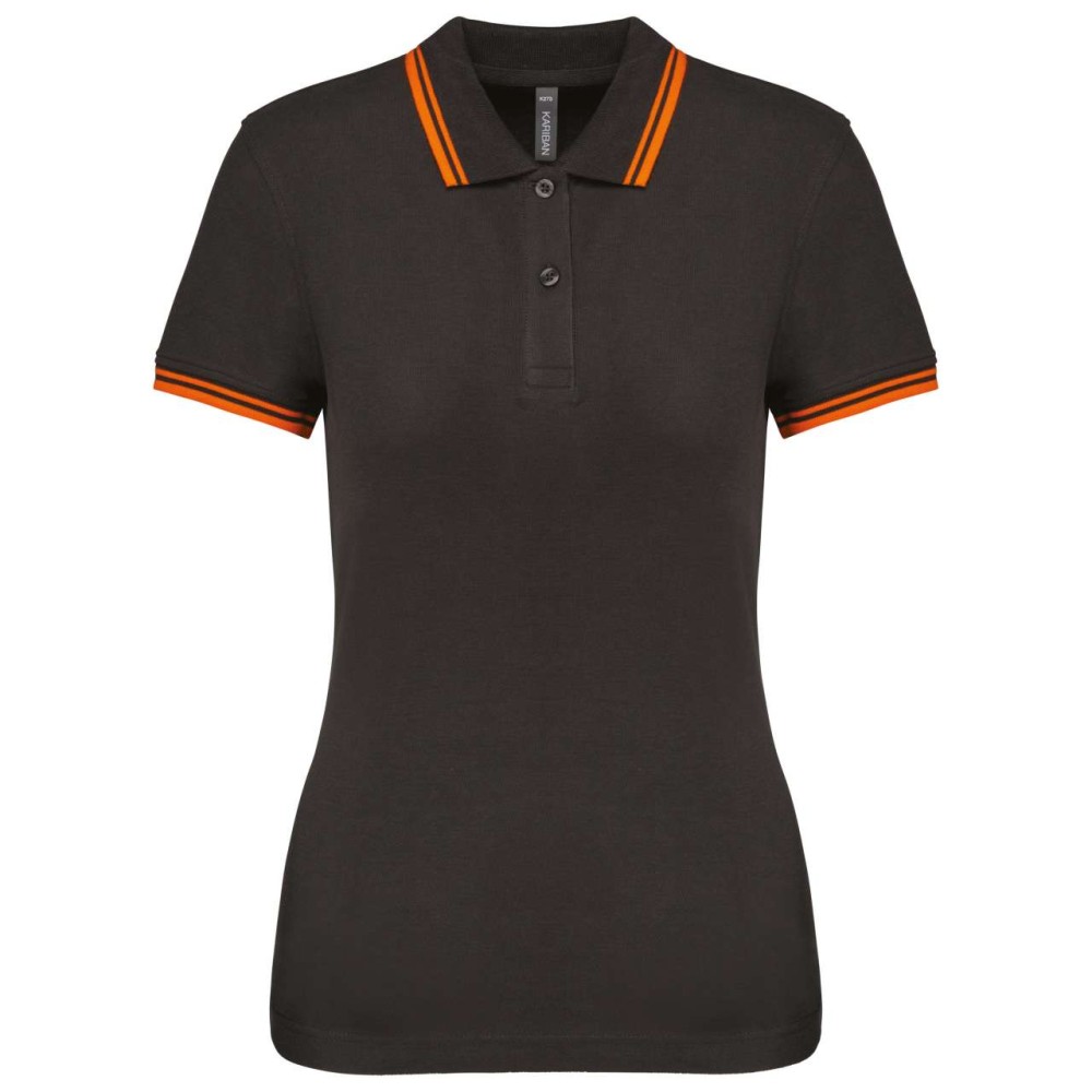 Kariban női rövidujjú galléros póló, Dark Grey/Orange