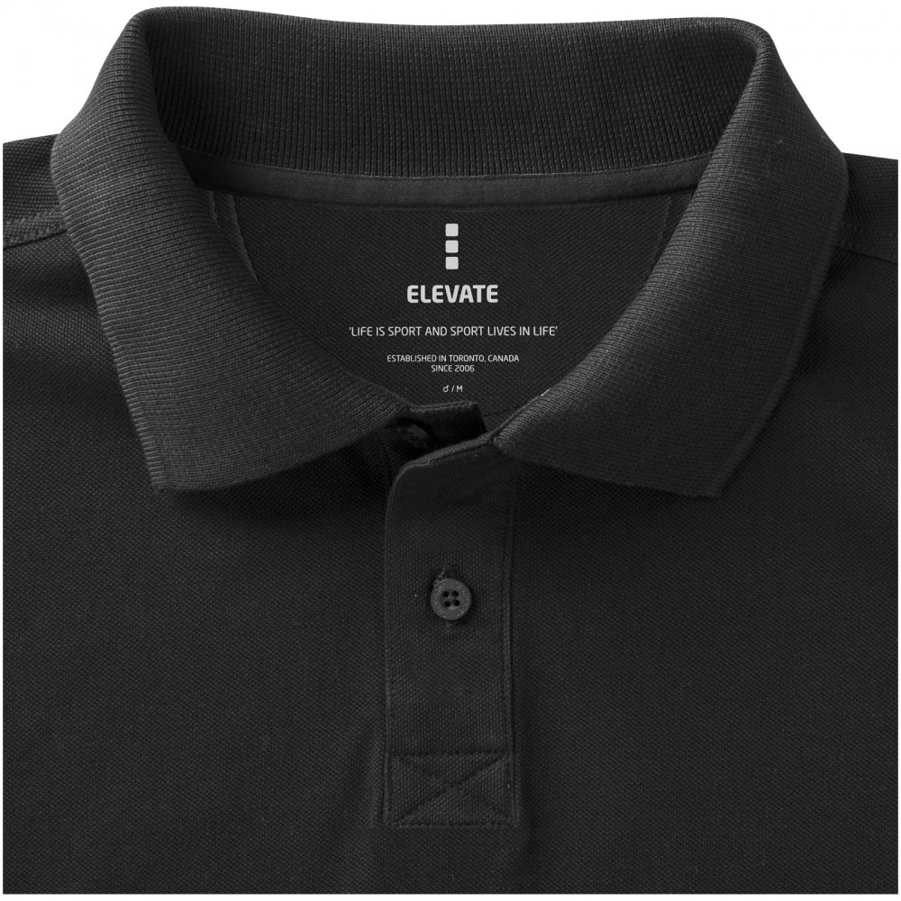 Normál szabásvonal. A férfi és a gyerek modellt 2 gravírozott gomb díszíti. A női modellt 3 gravírozott gomb díszíti. Előre helyezett, láncöltéses vállvonal. Tónusos logónyomat hátul. Oldalslicc szatén szalagerősítéssel. Rejtett öltések. Szatén szalagerősítés a nyakrészen. Félholdas nyakbetét. 1x1 bordás gallér és ujjpasszé. 100% pamut piké. 200 g/m2.