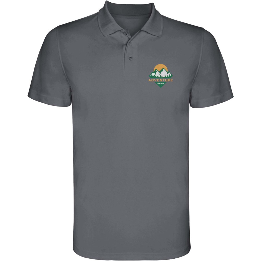 Rövidujjú technikai, galléros piképóló. Kötött gallér 3 gombbal. Légáteresztő, könnyen mosható és szárítható anyag. Légáteresztő anyag. 100% poliészterből készült piqué kötött anyag, 150 g/m2.