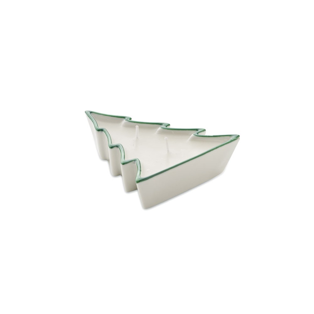 Növényi alapú viaszgyertya karácsonyfa alakú porcelán tartóban, 2 kanóccal. 60 g. Égési idő: 4 óra.