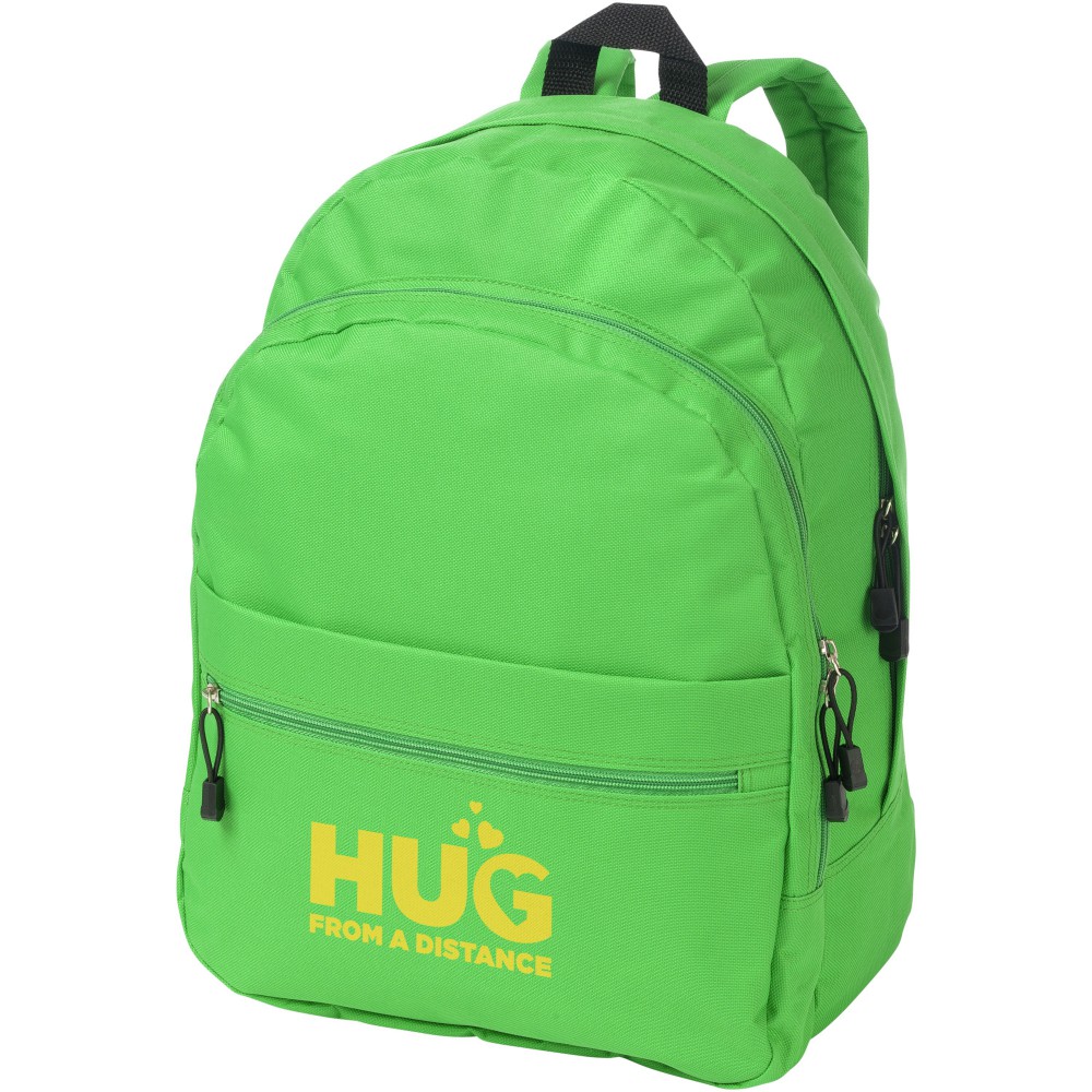 A kényelmes Trend hátizsák nyerő a promóciós hátizsákok között. A divatos kialakítású táska négy rekesszel rendelkezik: két cipzáras rekesszel, egy elülső cipzáras zsebbel és egy tépőzáras elülső zsebbel, így bőséges helyet kínál nagy és kis tárgyak tárolására egyaránt. A termék 600D poliészterből készült.