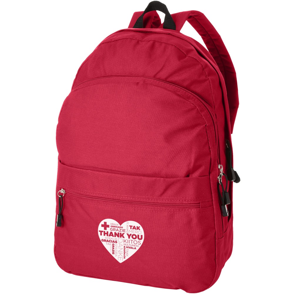 A kényelmes Trend hátizsák nyerő a promóciós hátizsákok között. A divatos kialakítású táska négy rekesszel rendelkezik: két cipzáras rekesszel, egy elülső cipzáras zsebbel és egy tépőzáras elülső zsebbel, így bőséges helyet kínál nagy és kis tárgyak tárolására egyaránt. A termék 600D poliészterből készült.