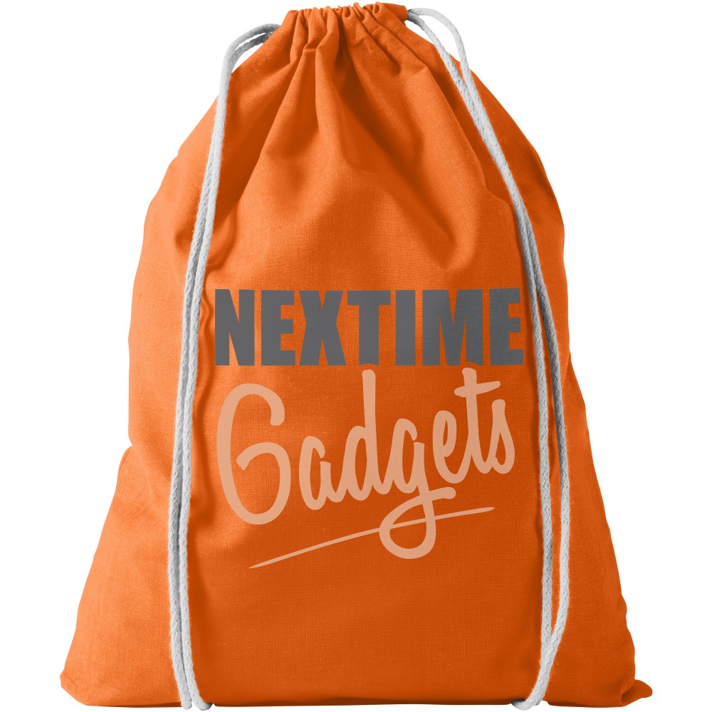 Húzózsinórral zárható nyitott fő rekesz. 100 g/m2 pamut.