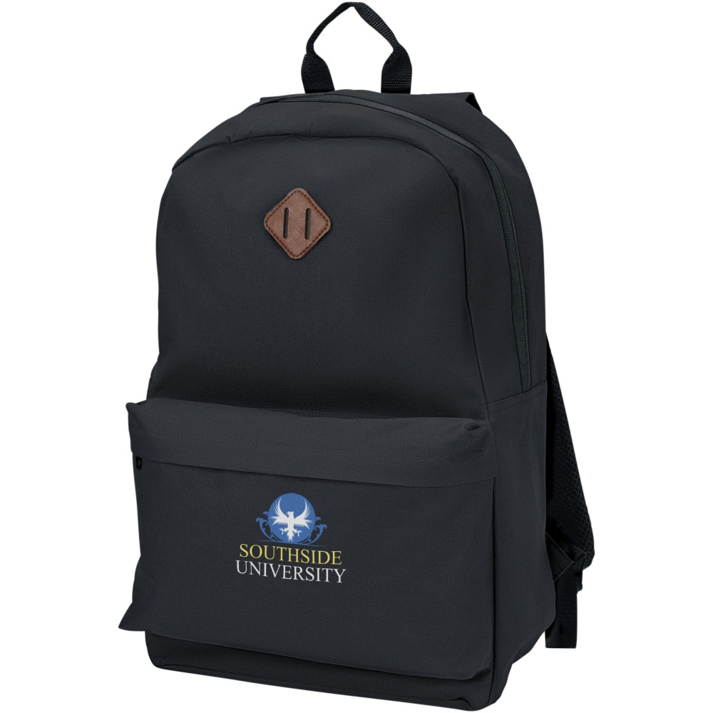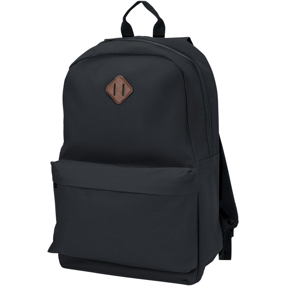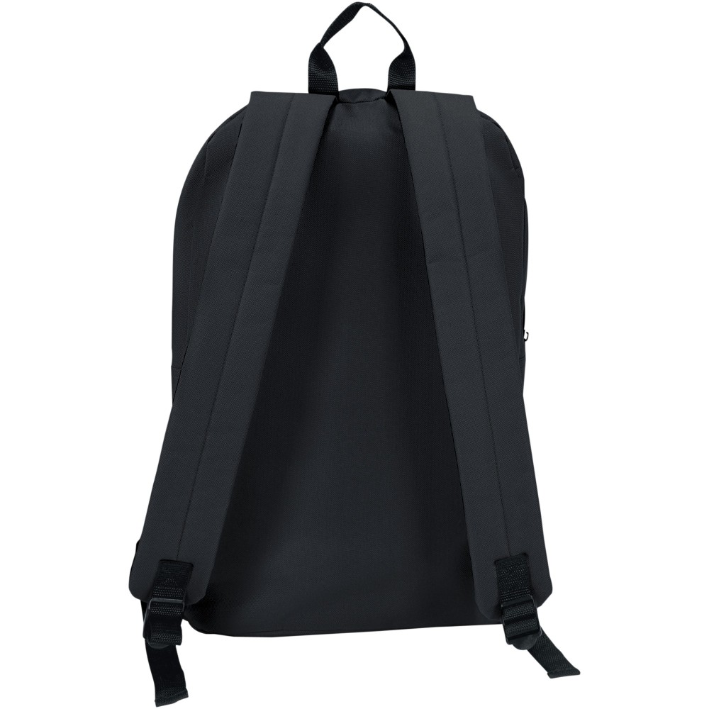 Laptophátizsák nagy fő résszel és egy tokkal 15 -os készülék számára. Állítható vállpánt, cipzáros elsőzseb és pántok az eszközök rögzítéséhez. 600D Poliészter.