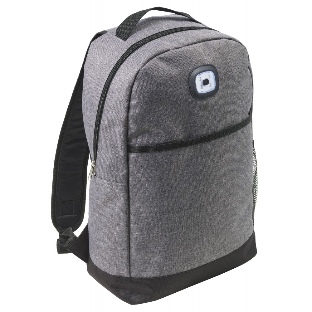 Kéttónusú hátizsák állítható és párnázott vállpánttal, párnázott hátkialakítással. Egy nagy főrész, elsőzseb és oldazseb. A hátizsák elején a COB fény kétféle állásban használható: folyamatos fehér vagy villogó piros. 300D és 210D poliészter. Az elemet tartalmazza.