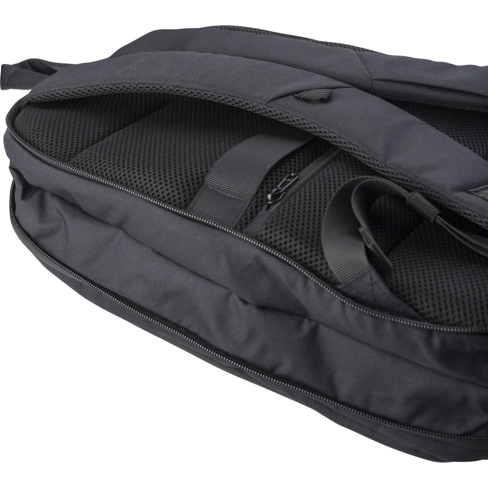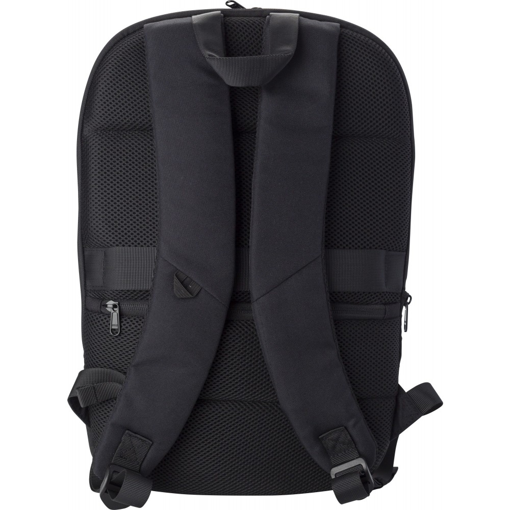 Hátizsák cipzáros elsőzsebbel, állítható, párnázott vállpánttal. Hátoldalán rejtett zseb, elöl fényvisszaverő csíkok. 600D poliészter.