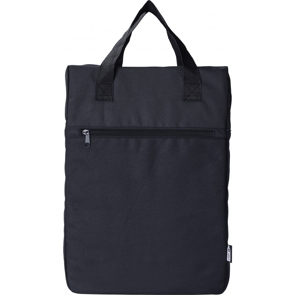 Hátizsák egy nagy rekesszel és egy cipzáras első zsebbel. Felső oldalán fülek. 600D RPET poliészter.