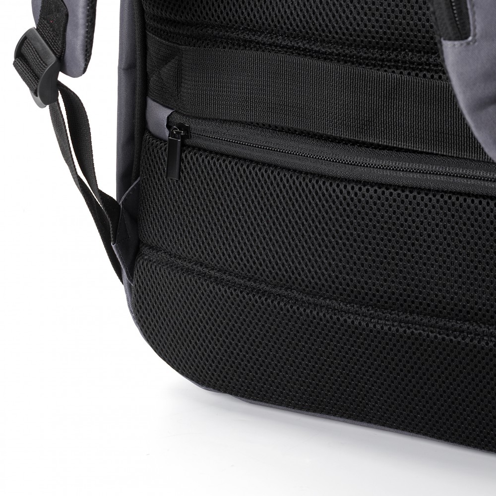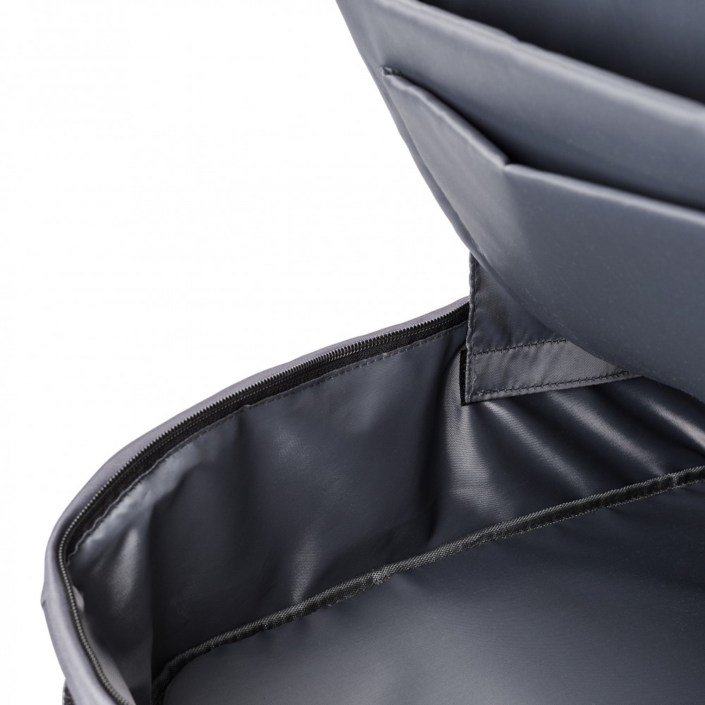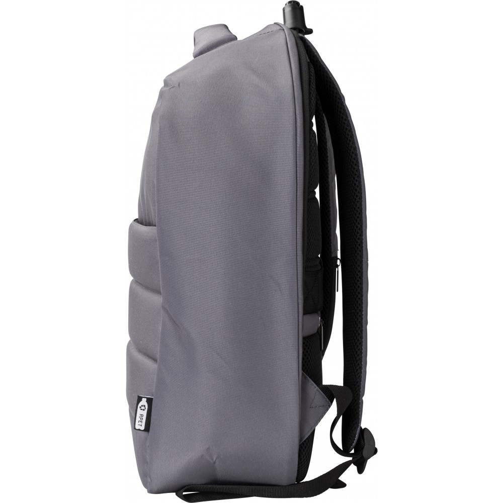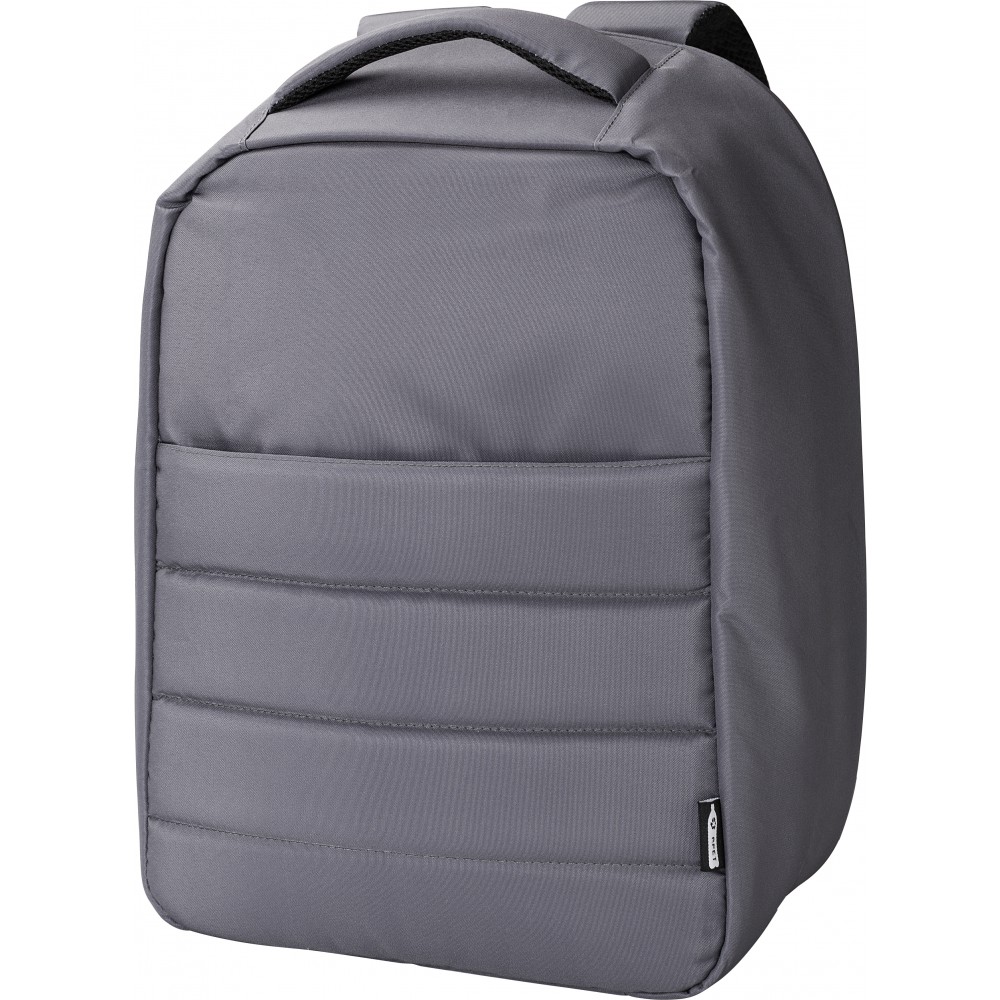 Lopásgátló laptop hátizsák egy nagy rekesszel. Hátul lopásgátló zseb. Belül két rekesz, melyek közül az egyik alkalmas 15 -es laptop számára. Párnázott hátpanel. 300D RPET poliészter.