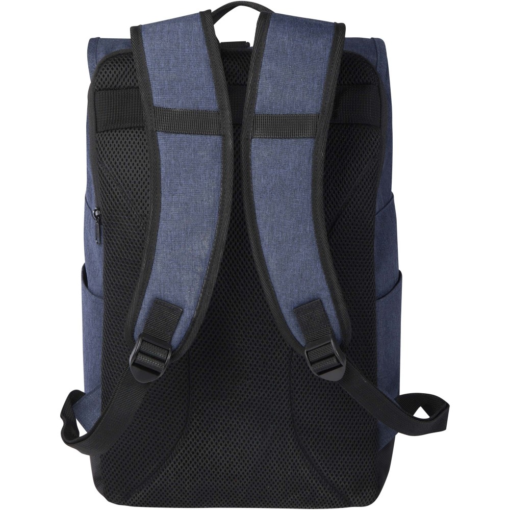 15,6 -es laptop hátizsák bélelt laptoptartóval, és párnázott, állítható vállpántokkal, cipzáras fő rekesszel, feltekerhető zárással, 2 füllel és elülső cipzáras zsebbel. Poliészter, 300D poliészter.
