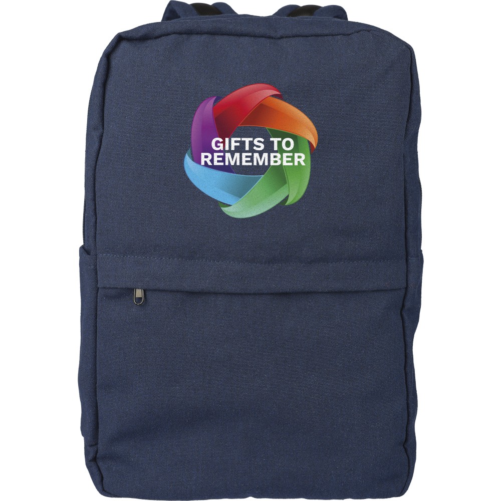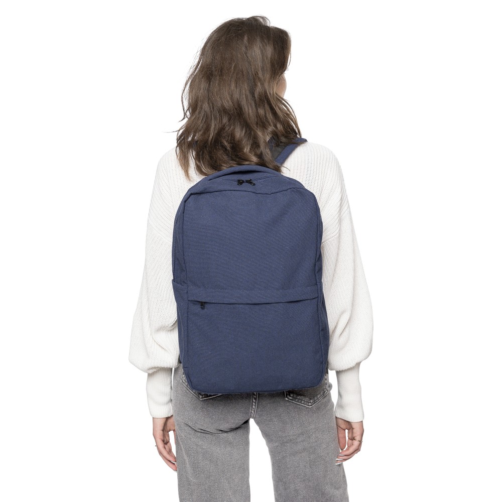 Hátizsák 330 g/m2 újahasznosított policotton anyagból, 210D poliészter béléssel. Egy nagy cipzáras rekesszel, párnázott 15 -es laptoptartó résszel, két belső és két külső rekesszel, oldalzsebbel és egy kicsi, cipzáras elsőzsebbel. Párnázott, állítható vállpánttal és hordozófüllel. Űrtartalom: 14 liter, teherbíró képesség: 13 kg. Címkét tartalmaz.