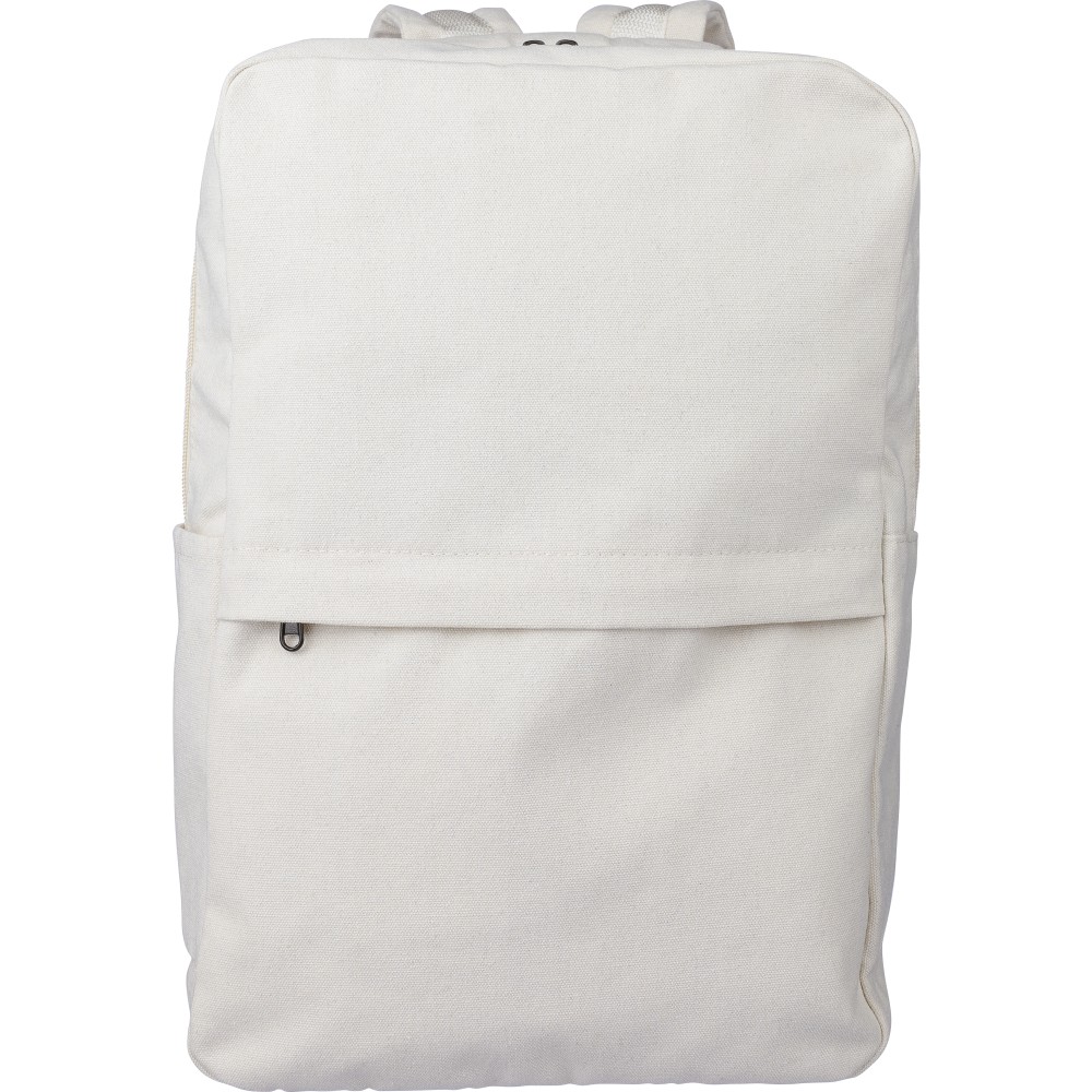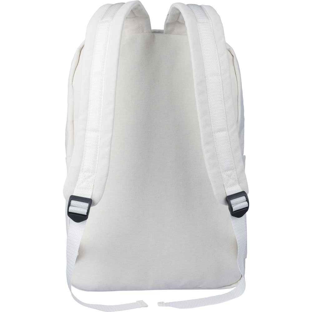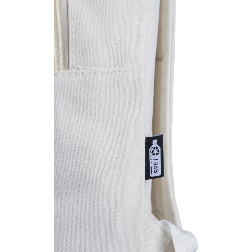 Hátizsák 330 g/m2 újahasznosított policotton anyagból, 210D poliészter béléssel. Egy nagy cipzáras rekesszel, párnázott 15 -es laptoptartó résszel, két belső és két külső rekesszel, oldalzsebbel és egy kicsi, cipzáras elsőzsebbel. Párnázott, állítható vállpánttal és hordozófüllel. Űrtartalom: 14 liter, teherbíró képesség: 13 kg. Címkét tartalmaz.