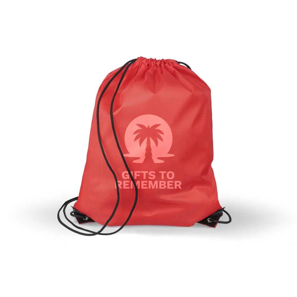 Tornazsák 210D poliészter anyagból, fekete PU sarokerősítéssel az elején, és belső varrással. Fekete nylon húzózsinórral, egy rekesszel. Űrtartalom: 5 liter, teherbíró képesség: 7 kg.