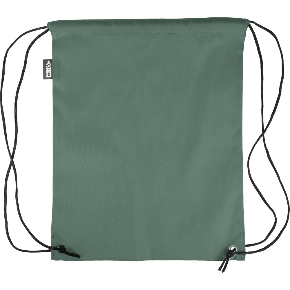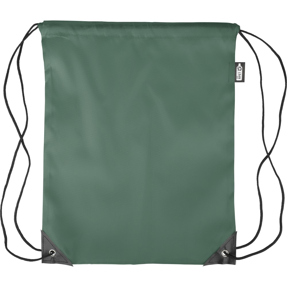 Tornazsák 210D poliészter anyagból, fekete PU sarokerősítéssel az elején, és belső varrással. Fekete nylon húzózsinórral, egy rekesszel. Űrtartalom: 5 liter, teherbíró képesség: 7 kg. rPET címkét tartalmaz.