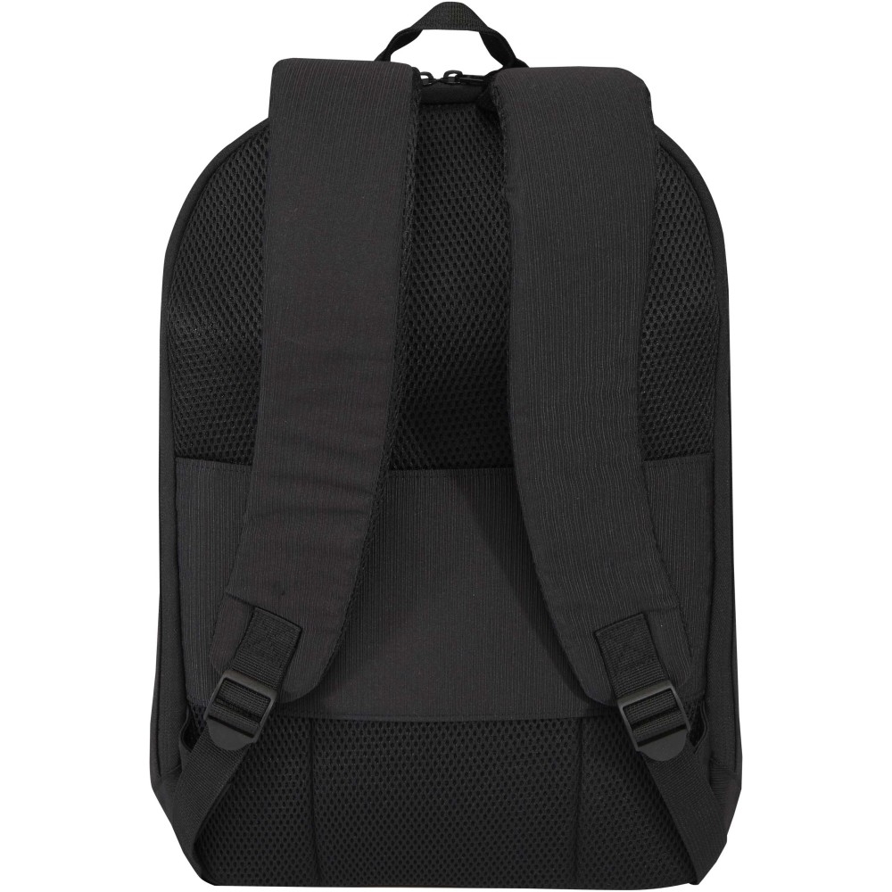 Az újrahasznosított jacquard poliészterből készült, színben passzoló RPET béléssel ellátott Luma 15" lopásgátló hátizsák az intelligens védelmi funkciókat ötvözi a letisztult stílussal. A biztonsági megoldások közé tartoznak a zárható cipzárak (a lakat nem tartozék), valamint egy rejtett hátsó zseb, amely egyben bőröndkocsi-pántként is funkcionál. Az anyag vízlepergető tulajdonságú, így megvédi az értéktárgyakat az enyhébb esőtől. A táska belsejében egy párnázott rekesz található legfeljebb 15" méretű laptopok számára, emellett külön tablettartó zseb, tolltartó hurokkal ellátott nyitott rekesz és rendszerezők segítik a kiegészítők tárolását. A kényelmet a párnázott vállpántok és a légáteresztő hátrész biztosítják, a hátizsák elején pedig fém emblémázó lemezek találhatók. Legyen szó munkába járásról, repülőtéri közlekedésről vagy iskolai használatról, ez az öko hátizsák egész napos kényelmet nyújt.