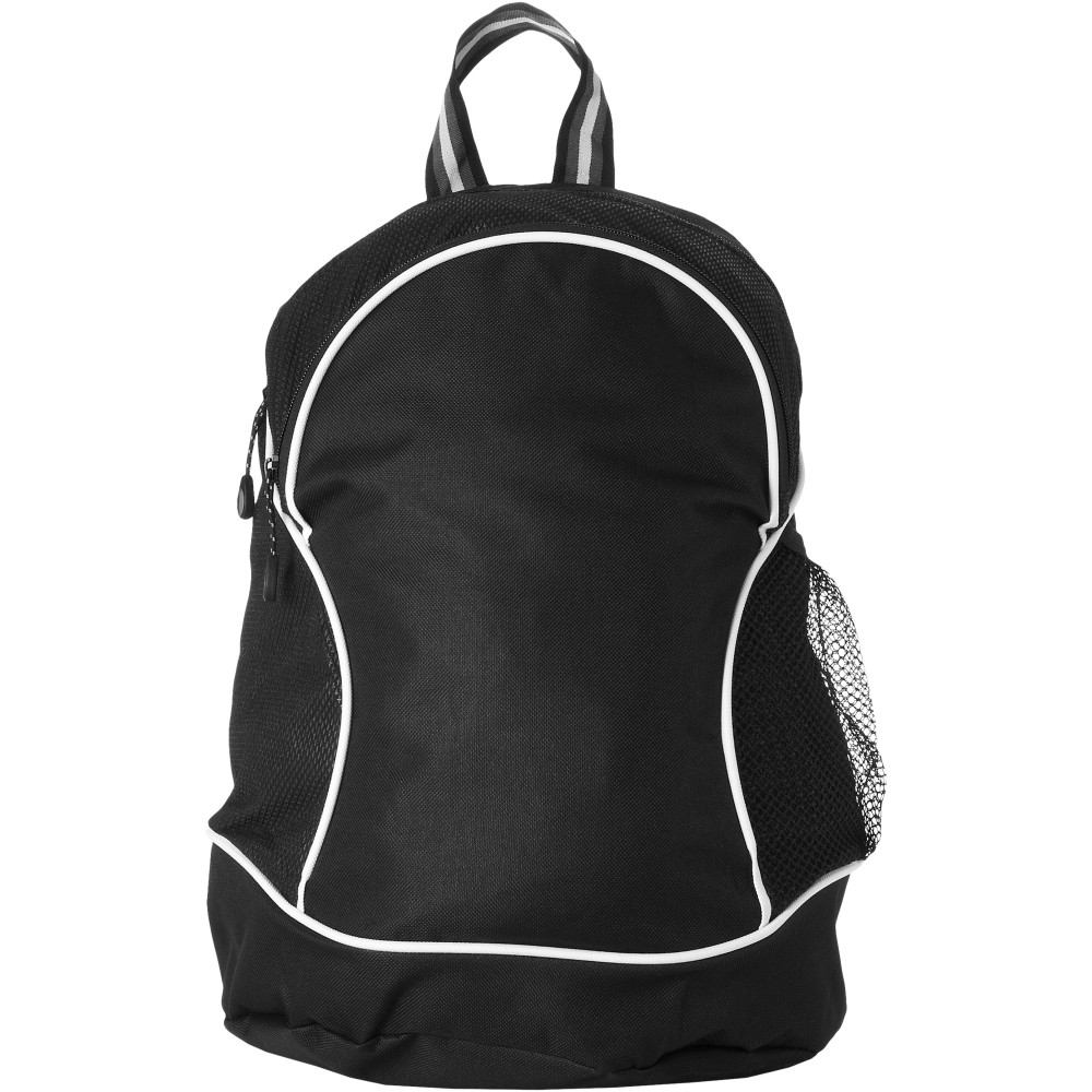 Cipzáros főrész és első zseb belső rendezővel. Oldalt hálós zseb. Párnázott, állítható vállpántokkal. 600D poliészter és nemszőtt 80 g/m2 poliészter.