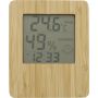 Időjárásállomás összecsukható állvánnyal. Funkciók: óra, naptár, hőmérő, páratartalom-mérő. Elemek mellékelve. Bambusz és ABS.