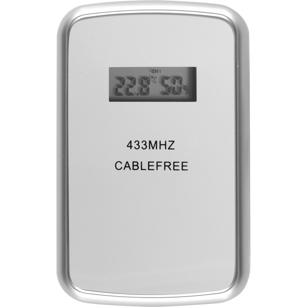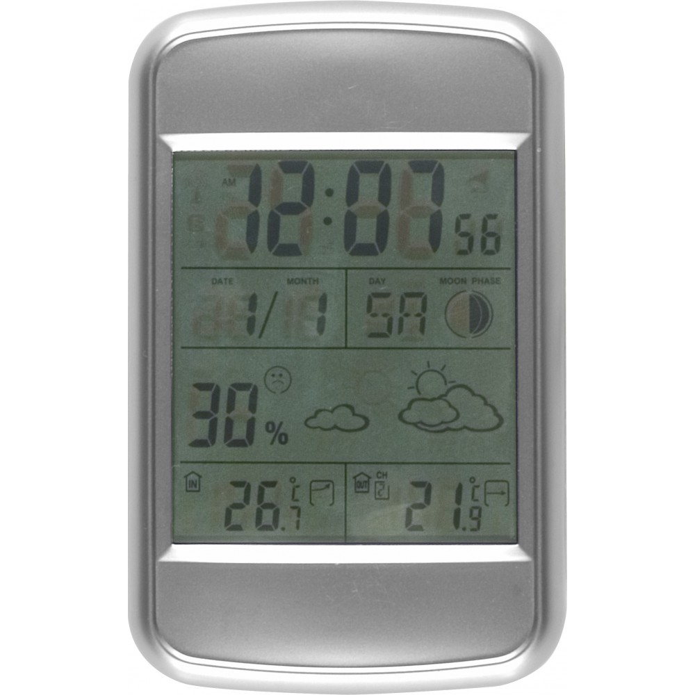 Időjárásjelző állomás külső érzékelővel, LCD kijelzővel. Óra, naptár, hőmérő és higrométer. A holdfázist is mutatja. Az elemet tartalmazza.