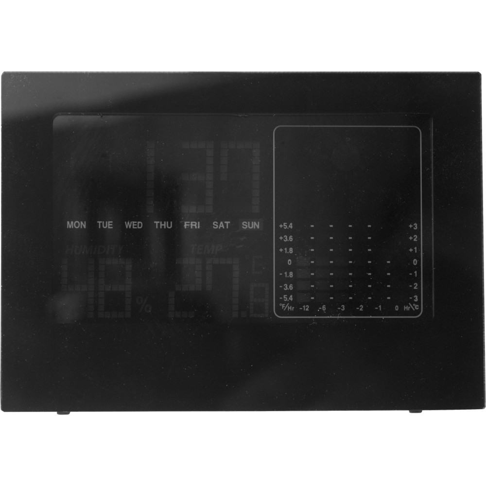 Digitális időjárásjelző állomás. Ébresztőóra, naptár, hőmérő és páratartalommérő. A világítása aktiválásra lép működésbe, fényereje éjszaka sem sérti a szemet. Az elemet tartalmazza.