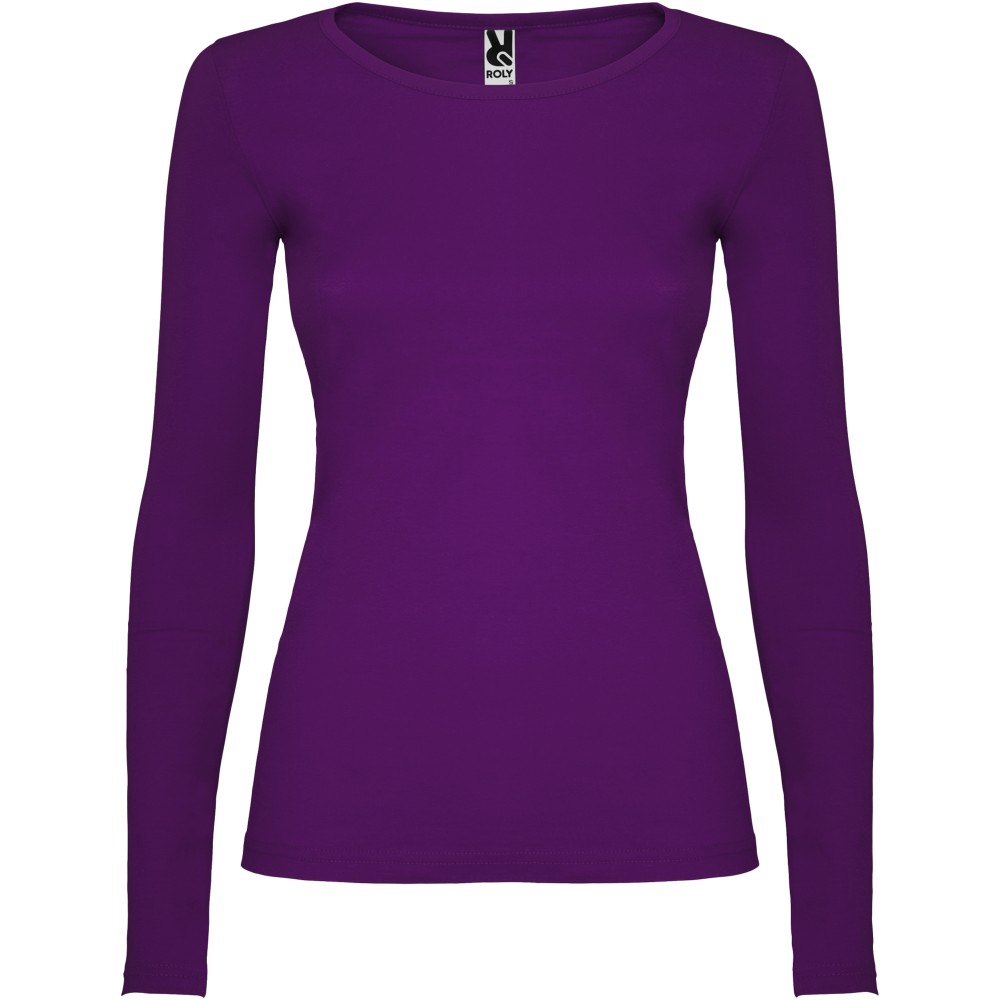 Hosszúujjú, oldalvarott, enyhén karcsúsított női póló 4 rétegű, kerek, keskeny nyakkal. Nincs ujj- és aljpasszé. Megerősített nyaki varrások. A férfi modell körkötött, a gyermek és női modell oldalvarrott. Szürke szín: 85% pamut és 15% viszkóz, 160 g/m2. Egyéb színek: 100% pamut, 160 g/m2.
