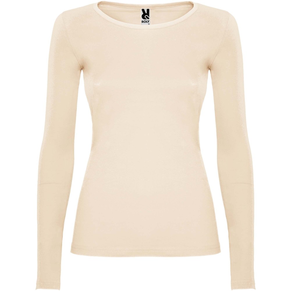 Hosszúujjú, oldalvarott, enyhén karcsúsított női póló 4 rétegű, kerek, keskeny nyakkal. Nincs ujj- és aljpasszé. Megerősített nyaki varrások. A férfi modell körkötött, a gyermek és női modell oldalvarrott. Szürke szín: 85% pamut és 15% viszkóz, 160 g/m2. Egyéb színek: 100% pamut, 160 g/m2.