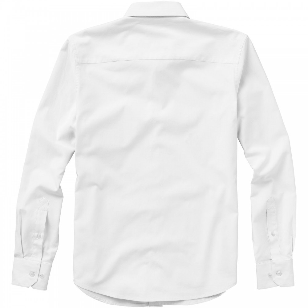 Normál szabásvonal. Elevate logóval gravírozott, fehér gombok. Alulról a második gomblyuk narancssárga öltésekkel dekorálva. Két gombos, állítható kézelő gombolás. Tónusos logónyomat hátul. Szatén szegély a nyakvonalban. Legombolható gallér (férfi). 100% pamut Oxford anyag. 142 g/m2.