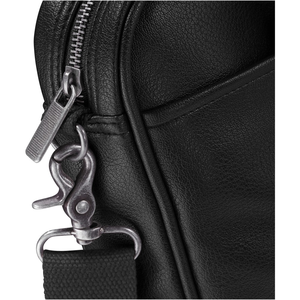 Oxford bőröndre húzható laptoptáska cipzáras főrekesszel, amely illeszkedik a legtöbb 15.6 laptophoz. Belső rendező panel tabletek és egyéb eszközök tárolására. Könnyen hozzáférhető elülső tépőzáras rekesz, leszerelhető, állítható vállpánt, hordozófülek és hátsó kengyel, amelynek segítségével ráilleszthető a legtöbb bőröndszállító kocsi fogantyújára. Antik bronz fémrészek. Műbőr.