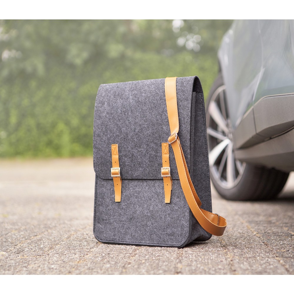 RPET filcből készült irattáska PU részletekkel. Egy nagy rekesz. A táska két csattal záródik.