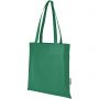 A tartós és szakadásálló RPET anyagból készült Zeus GRS újrahasznosított táska tökéletes és fenntarthatóbb megoldás vásárokra vagy konferenciákra. Vékony kialakítása elegáns modellé teszi, és alkalmas könnyű tárgyak, például egy jegyzetfüzet és egy toll szállítására. Fülei 29 cm hosszúak, ezért a táska könnyen hordozható vállon. Teherbírás: 5 kg.
