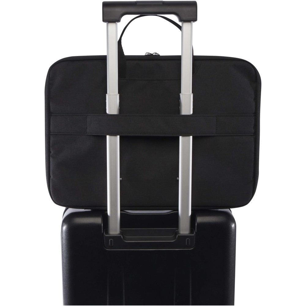 A Libra 2 az 1-ben laptop táska praktikus kialakításának és átgondolt funkcióinak köszönhetően ideális mindennapi ingázáshoz vagy utazáshoz. GRS tanúsítvánnyal rendelkező újrahasznosított poliészterből, valamint RPET béléssel készült, főrekesze pedig 180 fokban nyitható a biztonsági ellenőrzések megkönnyítése érdekében. A táska egyik oldalán minőségi neoprénnel védett laptoprekesz, a másik oldalán két hálós zseb található, emellett cipzáras elülső zseb, hátoldali bőröndpánt és két nyitott zseb biztosít extra tárolóhelyet. A szövet fülek könnyedén elrejthetők, így a táska egyszerűen laptop toként is használható.