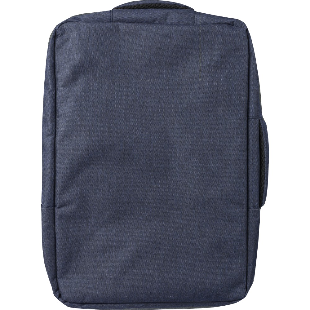 Laptophátizsák 300D rPET poliészter anyagból, 210D rPET béléssel. Egy nagy cipzáras rekesszel, számtalan belső zsebbel, tépőzáras laptoptartó zsebbel 15 -es laptop számára és 12 literes űrtartalommal. Megerősített, szellőző hátrésszel, állítható vállpánttal, oldalsó hordozófüllel és gurulóstáskára való felhelyezésre alkalmas pánttal. Teherbíró képesség: 10 kg.
