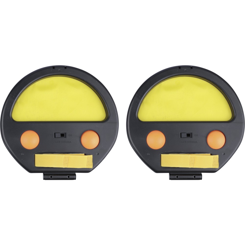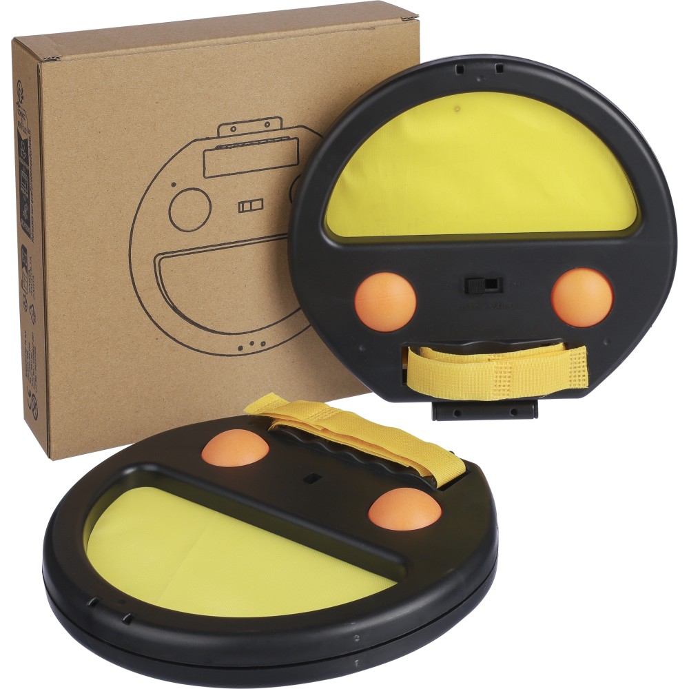 Labdajáték készlet két fogóval és négy labdával. A játék fogórészén zárral és tépőzárral, mely a kézhez való rögzítést segíti. Csomagolása barna papírdoboz. ABS.