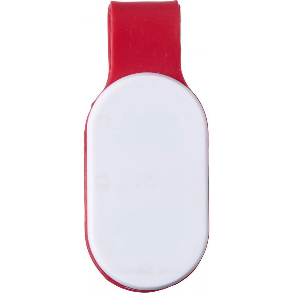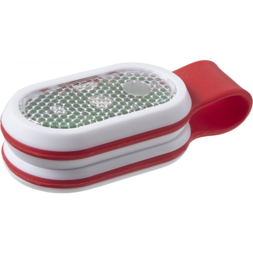 Biztonsági lámpa erős COB (Chip On Board) LED-del, fehér és piros fénnyel. Az erős mágnesek, valamint szilikon pánt rögzíti az első és a hátsó panelt. Az elemet tartalmazza.