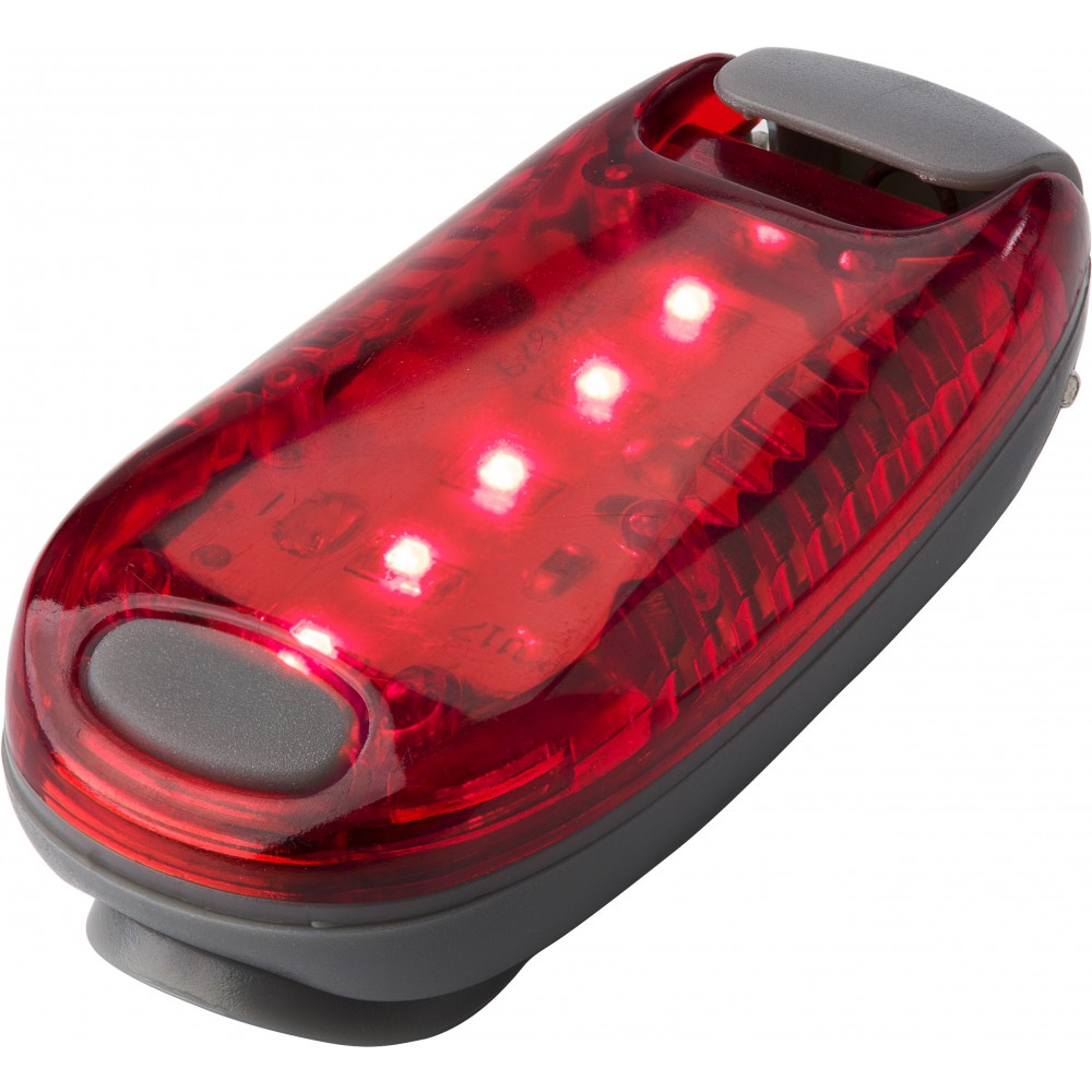 Lámpa klipsszel. A lámpát kétféle módon lehet beállítani: folyamatosan világító és villogó. ABS, poliészter, gumi, PS.
