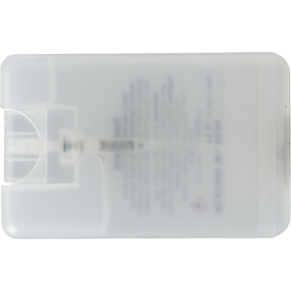 Kéztisztító spray áttetsző flakonban, 20 ml. Alkoholtartalom: 62%. Veszélyes áru, csomagban nem küldhető.