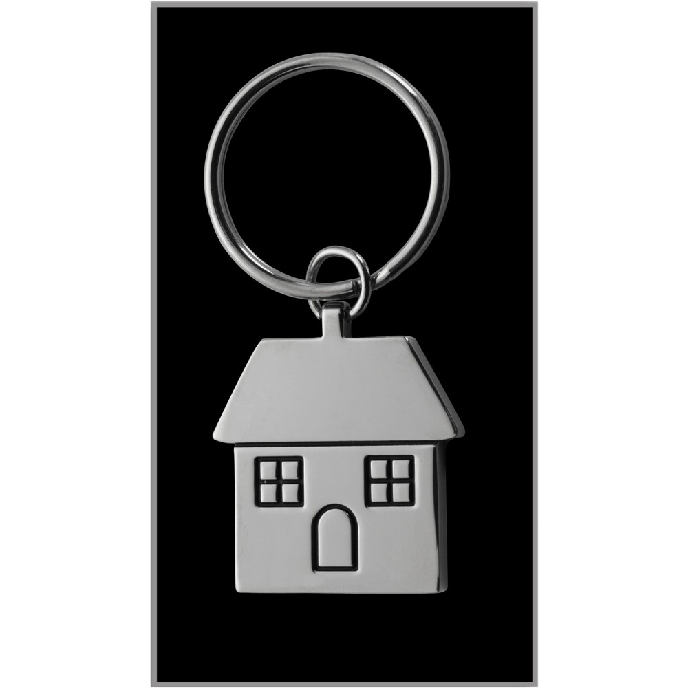 Ház formájú fém kulcstartó, ezüst