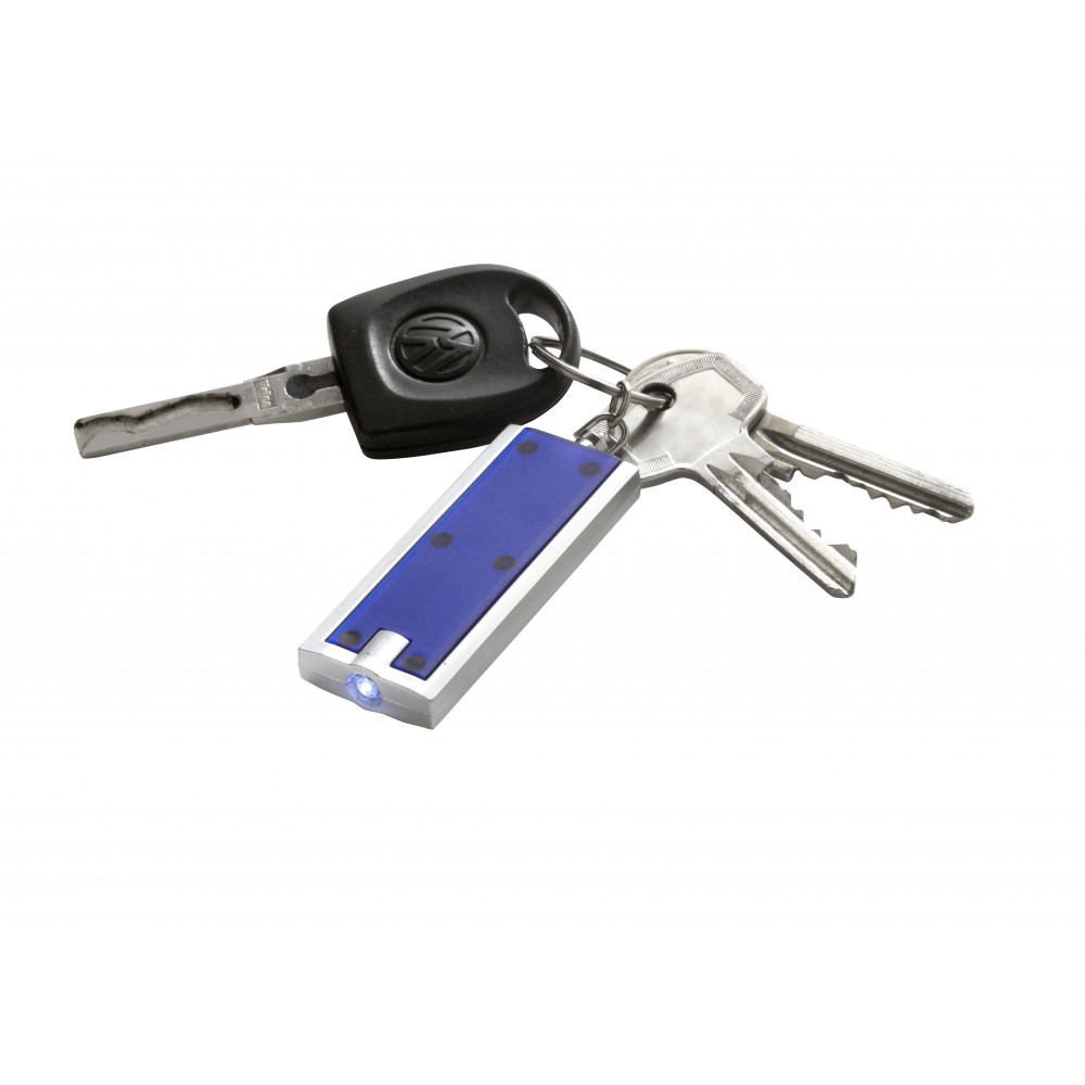 Világítós kulcstartó. Műanyag. Az elemet tartalmazza. A zöld, kék és piros színek áttetszőek.