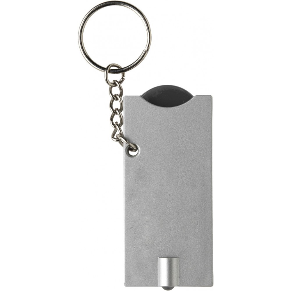 Világítós kulcstartó érmetartóval, ezüst/fekete