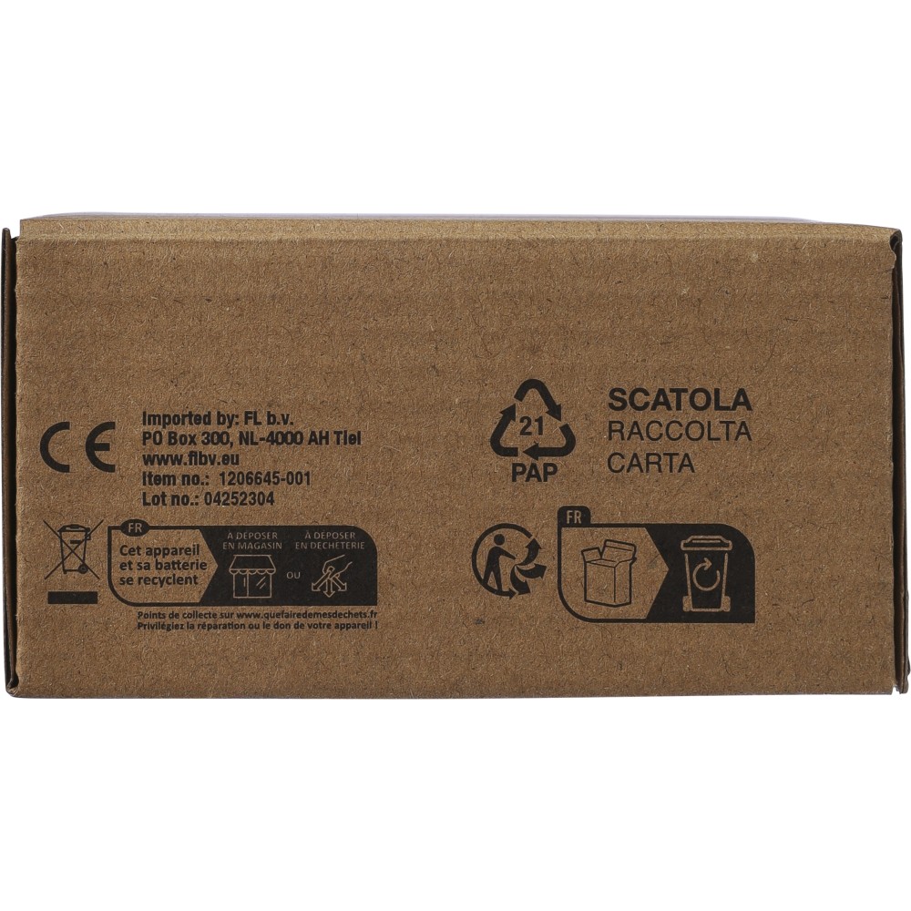 Tölthető kempinglámpa kétféle világítási móddal. 8 m hosszú fényfüzérrel, mely visszatekercselhető a lámpa belsejébe. 1000 mAh-s akkumulátorral, C-típusú csatlakozóval. Csomagolása barna papírdoboz.