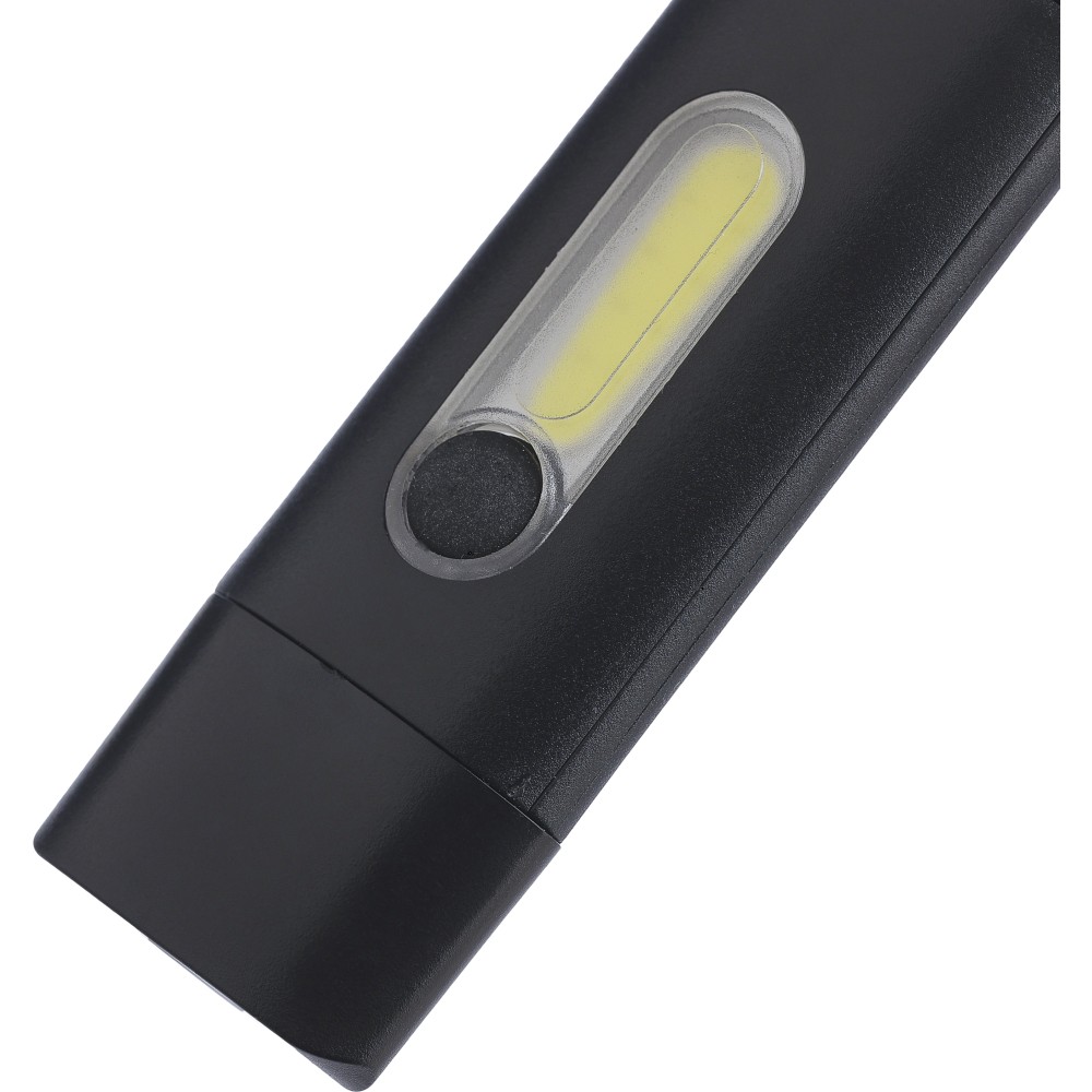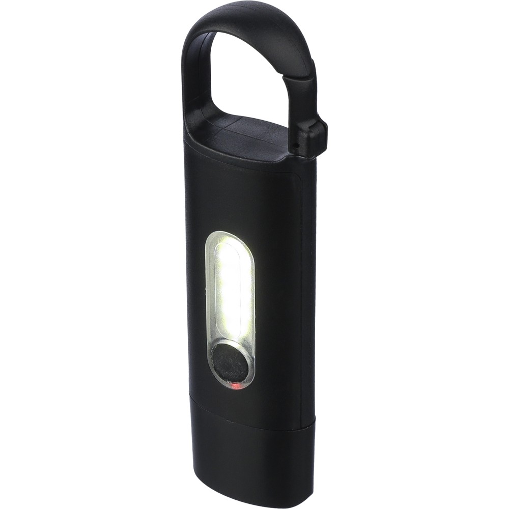 Mini elemlámpa újrahasznosított ABS anyagból, beépített 20 mAh-s, usb-n keresztül tölthető akkumulátorral és karabinerrel. Első COB lámpával és oldalsó COB fényszóróval, mely három világítási móddal rendelkezik. USB-C töltőkábellel, újrahasznosított ABS anyagot jelző logóval. Csomagolása barna papírdoboz.