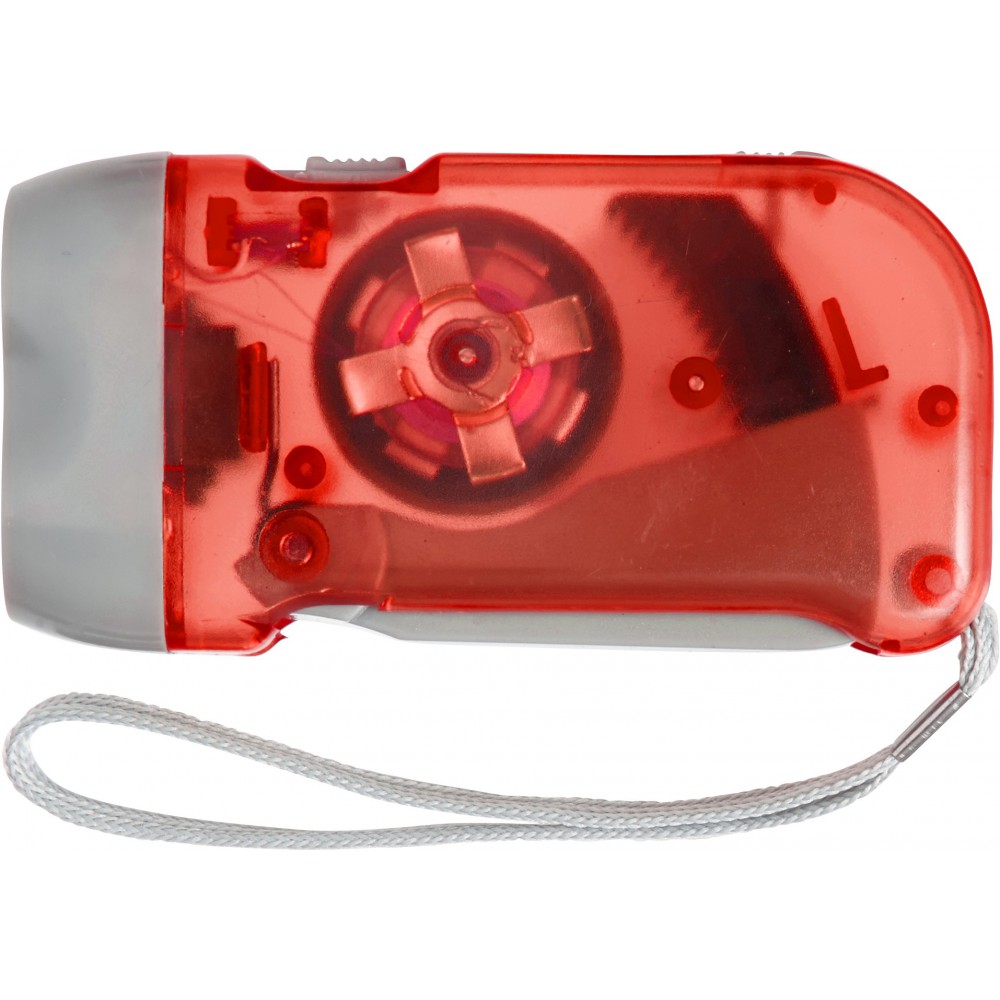 Műanyag dinamós zseblámpa, átlátszó piros/szürk