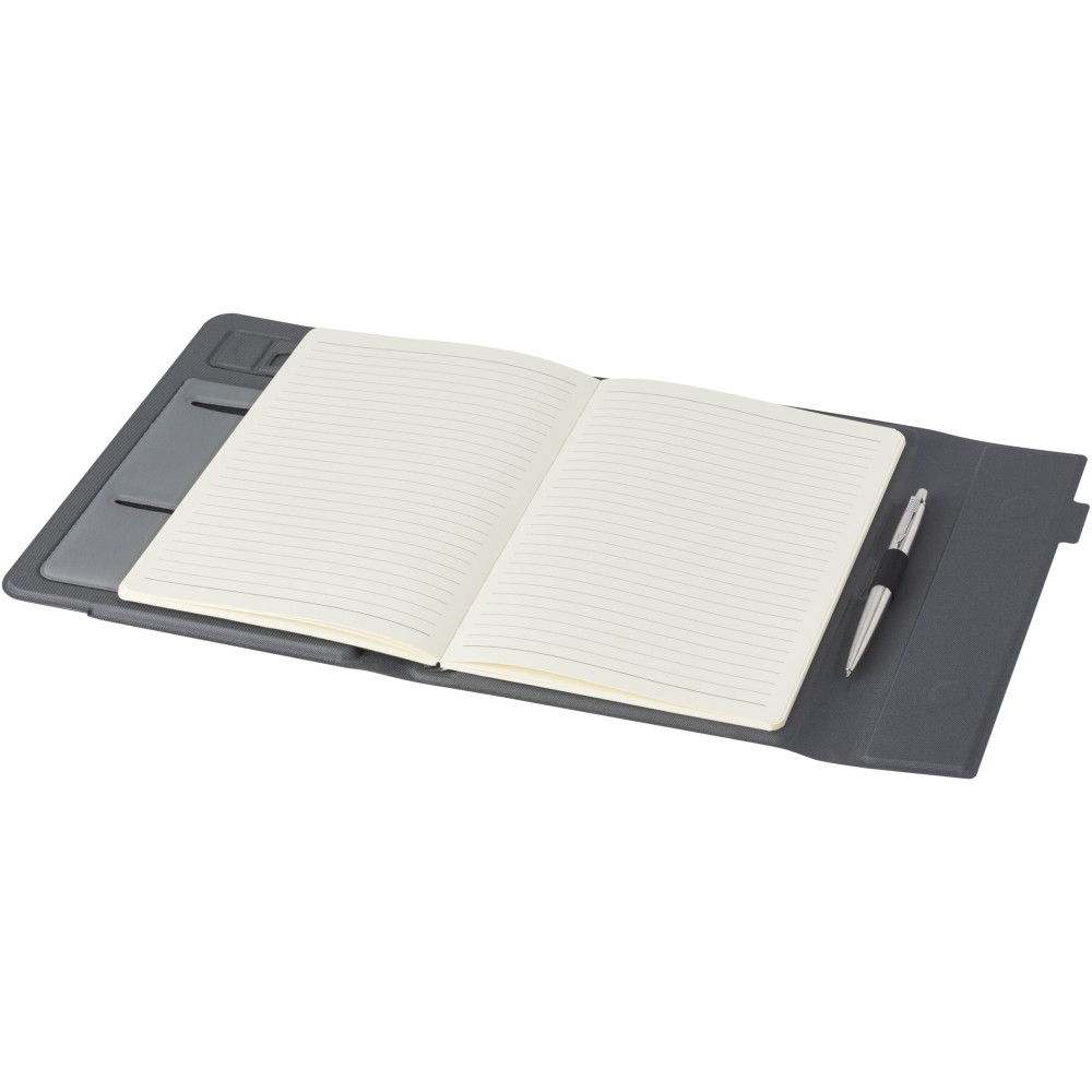 Az RCS tanúsítvánnyal rendelkező Liberto padfólió részben újrahasznosított poliészterből készül, így ez a padfólió fenntarthatóbb választás, mivel segít csökkenteni az új nyersanyag felhasználását. Tollhurokkal, harmonikazsebbel és 64 krémszínű, vonalas, fenntartható forrásból származó, 80 g/m2-es, újrahasznosított lappal rendelkezik. A képeken látható toll és egyéb kiegészítők nem tartoznak a termékhez.