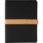 RPET összehajtható mappa, kb. A4-es méretben, több rekesszel, tollhurokkal és mágneses zárással. Tartalmaz egy jegyzettömböt 20 vonalas lappal. Egyedileg csomagolva kraft papír tokba.