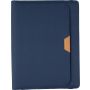 RPET mappa kb. A4-es méretben, cipzárral, több rekesszel és egy tollhurokkal. Tartalmaz egy jegyzettömböt 20 vonalas lappal. Kis zseb az elején. Egyedi csomagolás barna kraft dobozban.