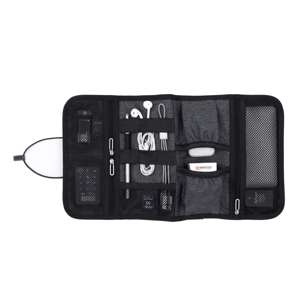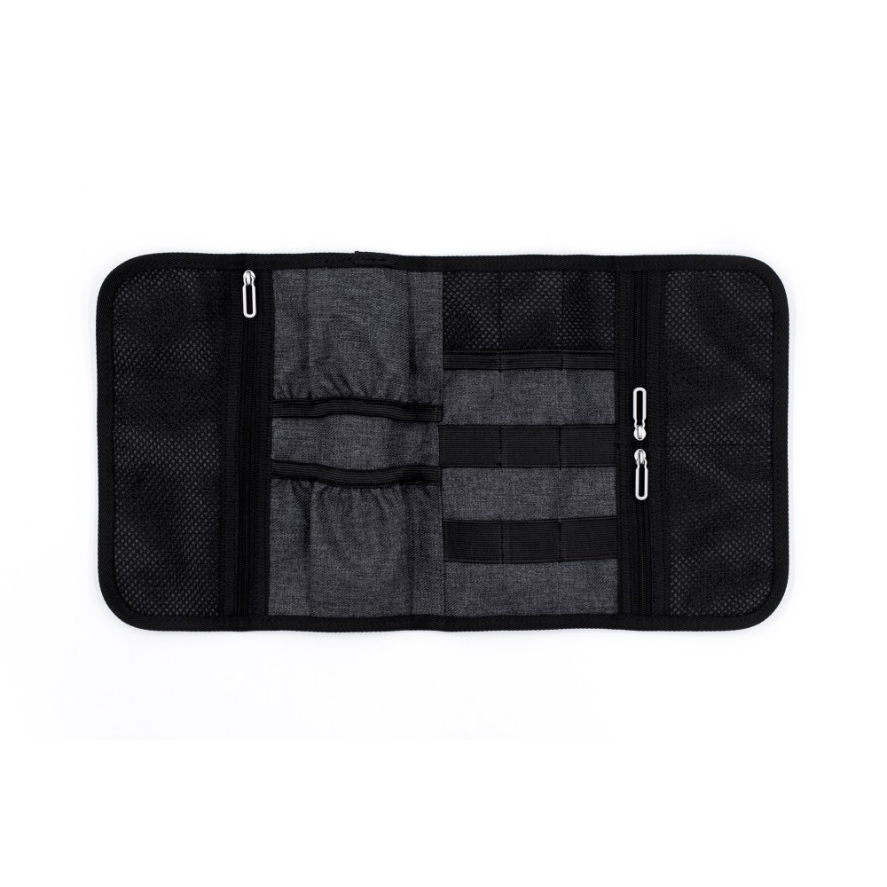 A Folio portfólió tökéletes társ a digitális eszközök és a mindennapi technikai eszközök rendszerezéséhez, miközben az utazási kiegészítők is elférnek benne. A prémium minőségű, víz- és folttaszító 600D poliészterből készült, kompakt kialakításának köszönhetően könnyen elfér a táskában, hátizsákban vagy bőröndben. A praktikus elrendezés 6 elasztikus hurkot tartalmaz a kábelek és eszközök számára, 3 hálós zsebet az olyan apróságok számára, mint az USB-k vagy SD-kártyák, valamint 2 nyitott zsebet a töltők vagy hálózati adapterek számára, így nagyfokú rugalmasságot és állítható belső tárolást kínál.
