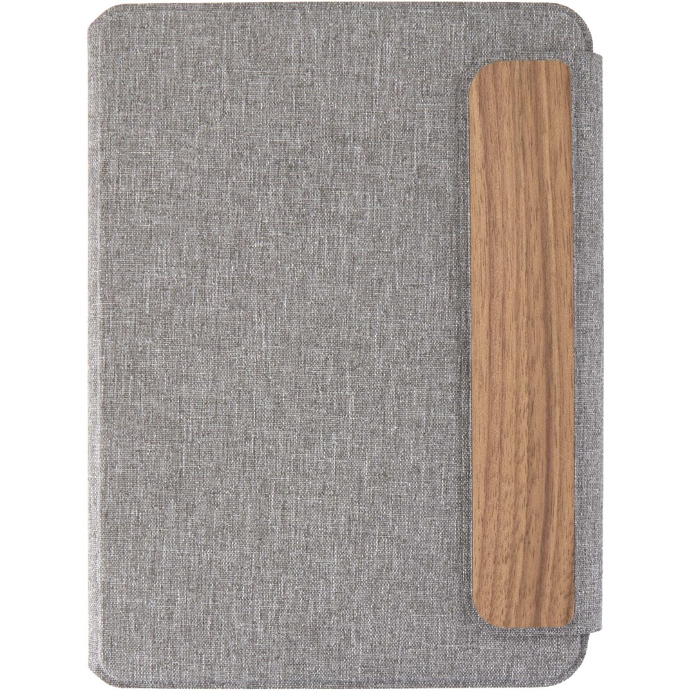 Az Andean A5 portfólió részben RCS tanúsítvánnyal rendelkező, újrahasznosított, fogyasztás utáni poliészterből készül, így fenntarthatóbb alternatívát kínál, csökkentve az új alapanyagok felhasználását. Elegáns, lekerekített sarkú, szürke kemény borítóját precíziós hegesztési technológia és mágneses zárás egészíti ki, amelyet kifinomult diófa részlet díszít, modern és letisztult megjelenést kölcsönözve. Belsejében egy kivehető, puhafedeles jegyzetfüzet található, amely 64 krémszínű, vonalazott, 80 g/m2 tömegű, felelősen beszerzett papírból készült lapot tartalmaz. Kraft színű papírtokban kerül átadásra.
