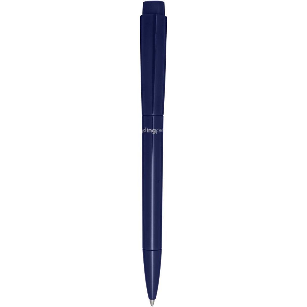 Golyóstoll, amelynek teste és klipsze újrahasznosított műanyagból, hegye pedig rozsdamentes acélból készült. Kék tollbetéttel. Íráshossz: 3000 méter. Hegyméret: 1,00 mm. Németországban készült.