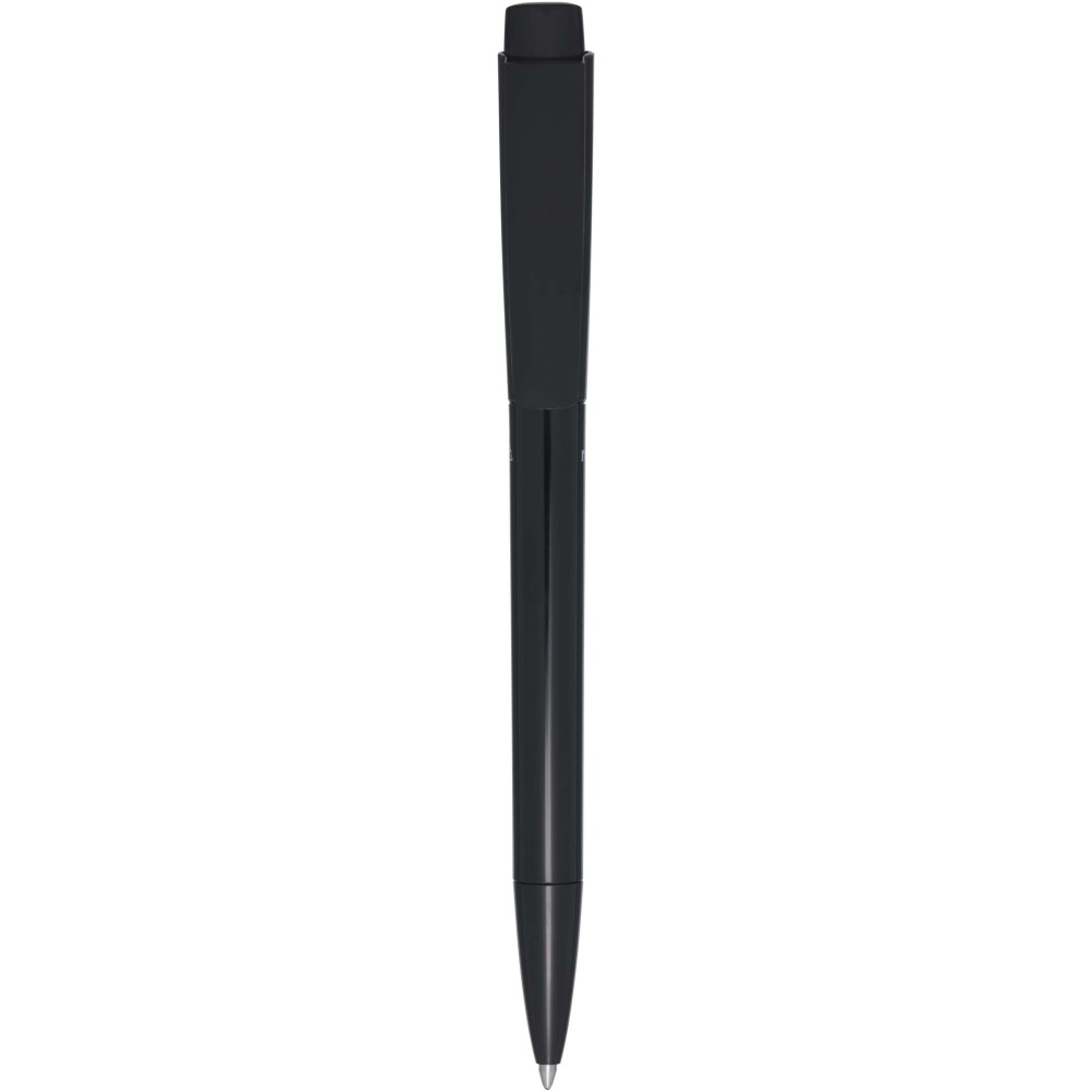 Golyóstoll, amelynek teste és klipsze újrahasznosított műanyagból, hegye pedig rozsdamentes acélból készült. Fekete tollbetéttel. Íráshossz: 3000 méter. Hegyméret: 1,00 mm. Németországban készült.