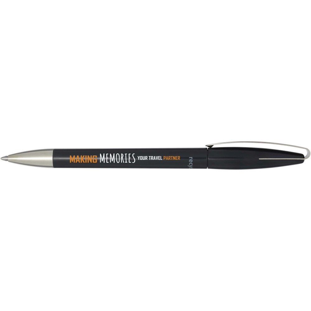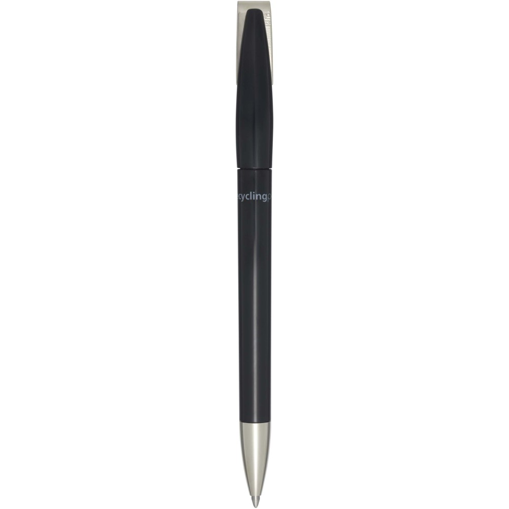 Golyóstoll, amelynek teste és klipsze újrahasznosított műanyagból, hegye pedig rozsdamentes acélból készült. Kék tollbetéttel. Íráshossz: 3000 méter. Hegyméret: 1,00 mm. Németországban készült.